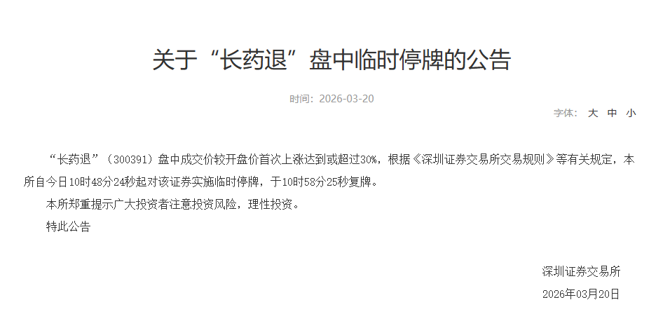 配资公司分析工具 深交所发布关于“长药退”盘中临时停牌的公告