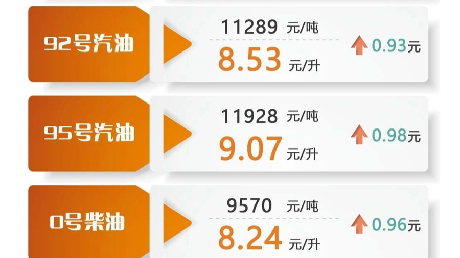 折合成升价后,此次调控后国内汽、柴油价格(标准品)每升分别上调0.87元左右、0.95元左右,相比不作调控每升少涨0.85元左右。
